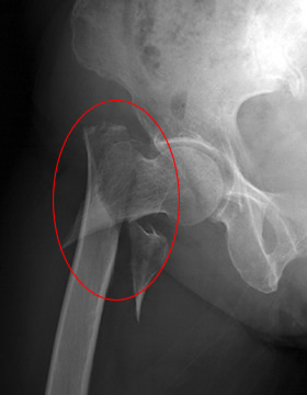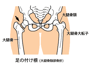 | 大腿骨頸部骨折レントゲン | 大腿骨頸部骨折イラスト |