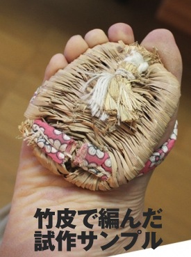 昔の手編みの足半は、ペタンコになったら捨てられていましたが、現代ではそのような使い方では、コストパフォーマンスが悪いのでタイヤ底を採用しました。
